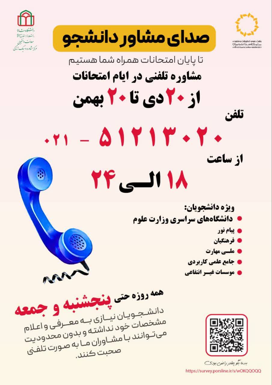 مشاوره تلفنی در ایام امتحانات ۲۴ دی ۱۴۰۳ | ۰۸:۵۰ کد : ۶۶۸۹ خبرها و اطلاعیهها ارسال به دیگران نام شما ایمیل شما ایمیل دریافتکننده ارسال انصراف تعداد بازدید:۹۷